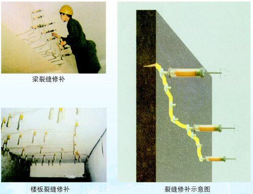適用范圍: 該方法適用于修補混凝土結構所出現的各種裂縫,恢復其整體性和使用功能;對于結構承載力不足引起的裂縫除采用本方法外,還應采取相應的加固措施,確保結構安全可靠。